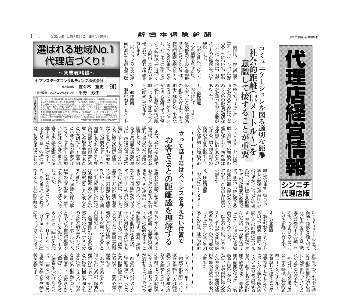 新日本保険新聞に掲載!保険代理店ブランド戦略関連記事! 2025年12月11日 お知らせ ホームページ 活動実績 新日本保険_保険代理店ブランド戦略_保険代理店態勢整備研究所_セブンスターズコンサルティング㈱ 前の記事